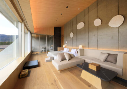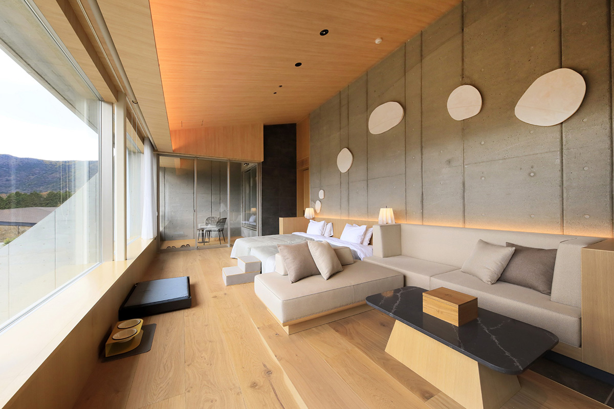 客室は60~200㎡の全10タイプ・15室。全室温泉付きで、滞在中はいつでもプライベートな空間で至福の時間を過ごせます。1階客室にはプライベートドッグラン/ウッドデッキ、2階客室にはインナーバルコニー/サンルームを完備。愛犬とともに自然の空気を全身に浴びながらリラックスできます。