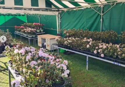 庭園内の特設テントでは、フェア期間中に苗木の販売を実施します。色鮮やかなツツジを鑑賞した後は、旅の思い出やご自宅用のお土産として、お気に入りの一鉢をお買い求めいただけます。