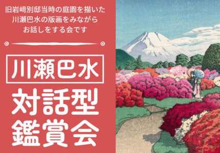 岩﨑男爵別邸時代の庭園を描いた川瀬巴水の版画を眺めながら、感じたことを語り合う対話型鑑賞会です。対話を通して作品の新たな魅力に出会うイベントで、正解はなく、美術知識がなくても気軽に楽しめます。
