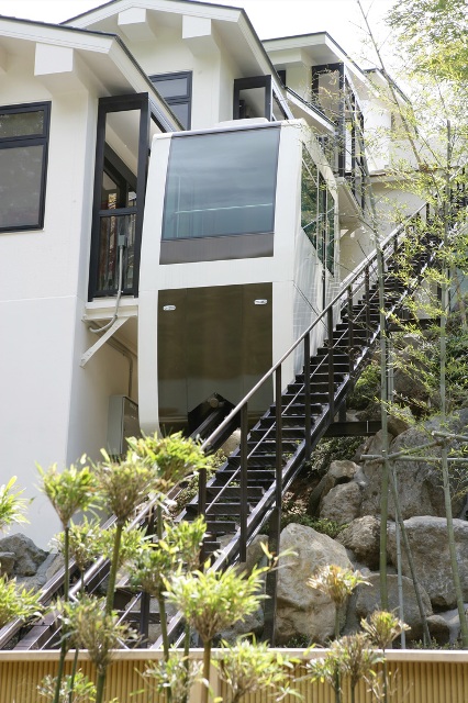 さらに高低差のある温泉棟は、階段を使わずに楽に行き来ができるよう、斜面を移動する「スロープカー」を導入。車いすのまま乗車することも可能です。