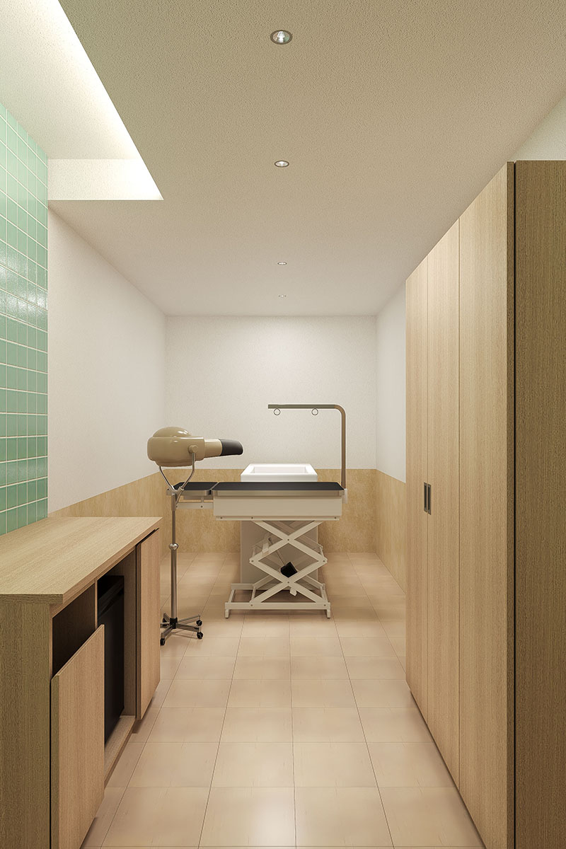 マイクロバブルシャワー付きバスタブ、ワンちゃん用シャンプーなどを完備します。