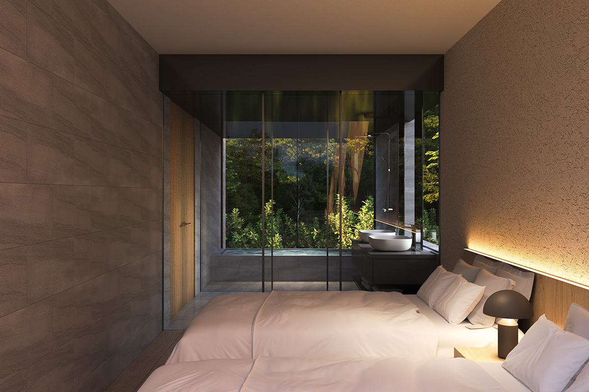 当ホテルは、2024年3月末に閉業した“小田急 箱根レイクホテル”から全面リノベーションし、今冬にグランドオープン。「RETURN TO NATURE(自然への回帰)」をコンセプトに、全客室に温泉風呂を設えるほか、滞在中の食事サービスや館内設備も充実させ、ホテルで愛犬と過ごす特別なひとときを提供します。
