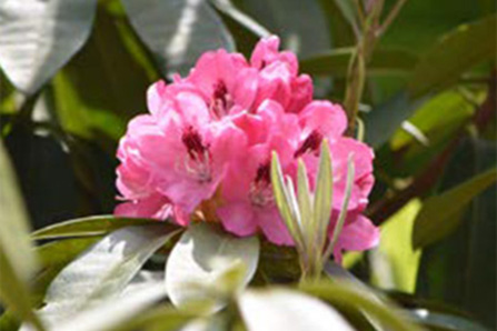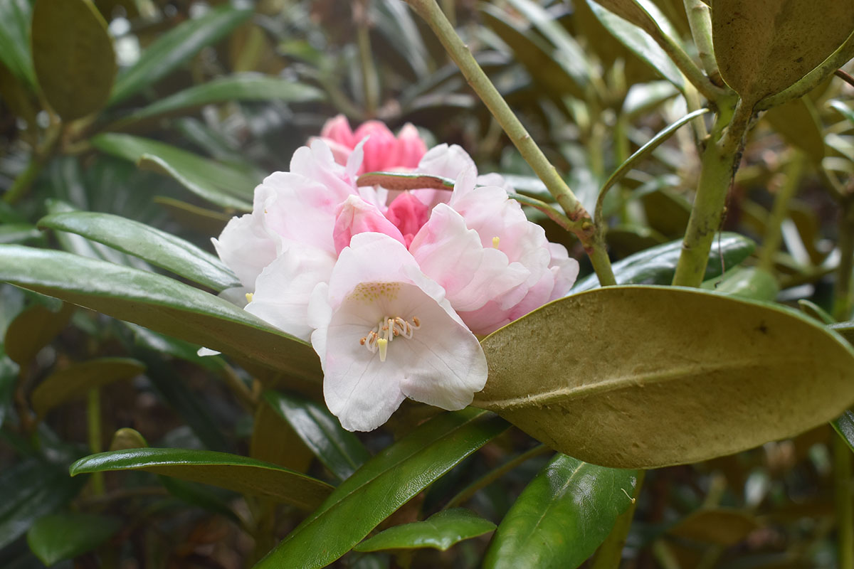 「ヤクシマシャクナゲ」日本原産の野生種。屋久島(鹿児島県)の固有種で、蕾は濃いピンクだが、開花すると白色になる。