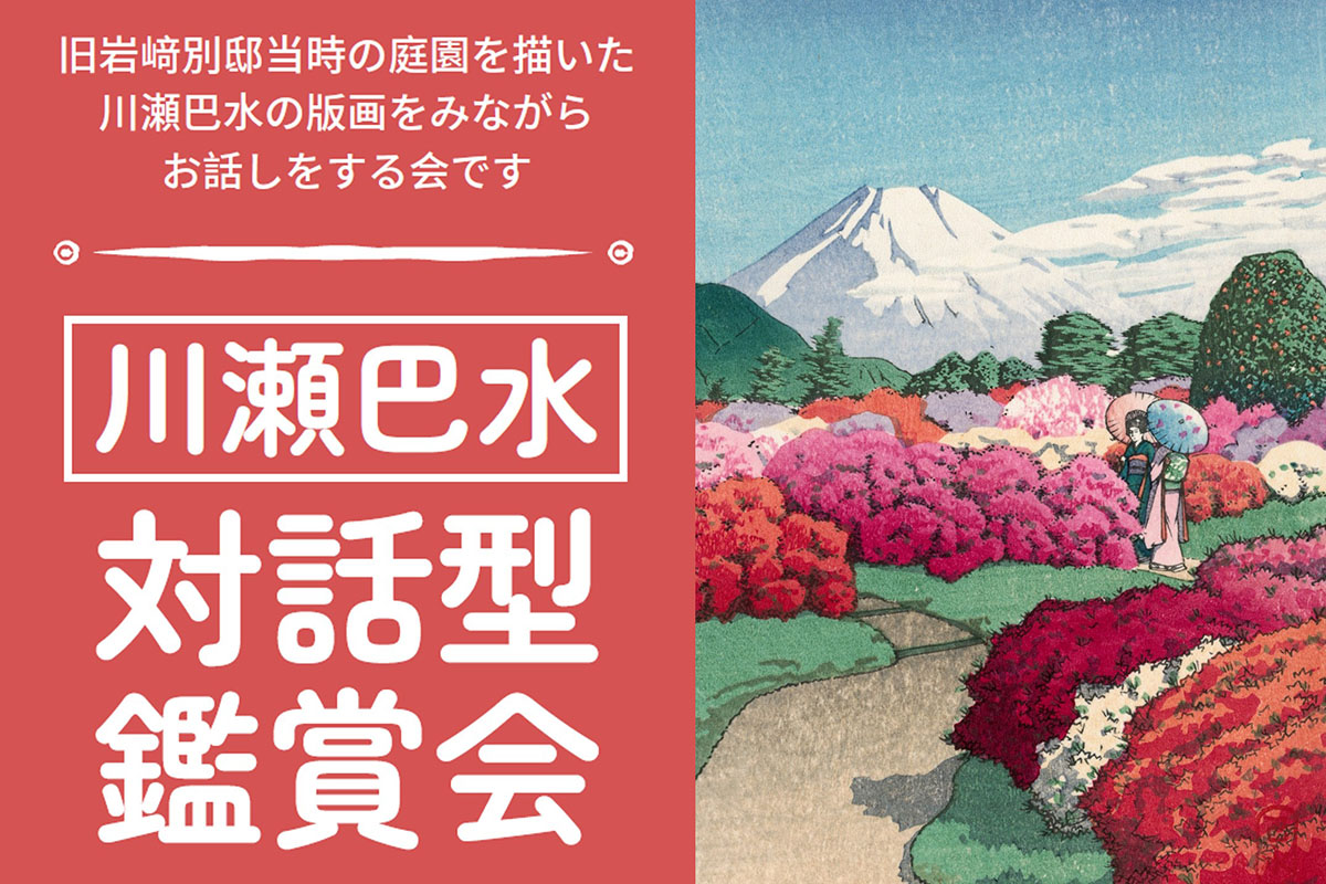 岩﨑男爵別邸時代の庭園を描いた川瀬巴水の版画を眺めながら、感じたことを語り合う対話型鑑賞会です。対話を通して作品の新たな魅力に出会うイベントで、正解はなく、美術知識がなくても気軽に楽しめます。